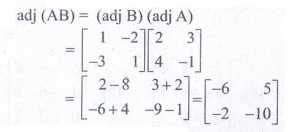 (iii) A என்பது n வரிசையுடைய ஒரு சதுர அணி மற்றும் λ என்பது ஒரு திசையிலி எனில் adj (λA) = λn adj (A) .