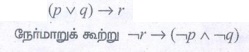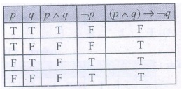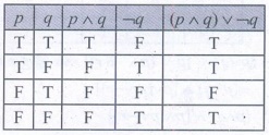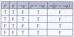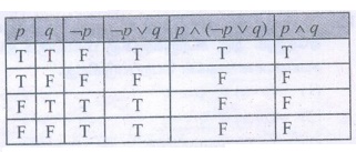 ( p ∧ q ) ∨¬q –ன் மெய்மை அட்டவணை கீழே தரப்பட்டுள்ளது.