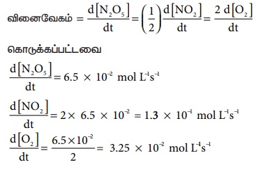 N2O5(g) → 2NO2(g) + (1/2)O2(g) என்ற வினைக்கு N2O5 ன் மறையும் வேகமானது 6.5 × 10-2 mol L-1