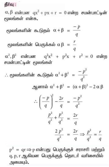 = 0 என்ற சமன்பாட்டின் மூலங்களின் வர்க்கங்கள், qx2 + px + r =
