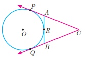 படத்தில் O ‒வை மையமாக உடைய வட்டத்தின் தொடுகோடுகள் CP மற்றும் CQ ஆகும். ARB ஆனது வட்டத்தின் மீதுள்ள புள்ளி R வழியாகச் செல்லும் மற்றொரு தொடுகோடு ஆகும். CP = 11 செ.மீ மற்றும் BC = 7 செ.மீ, எனில் BR ‒ யின் நீளம்