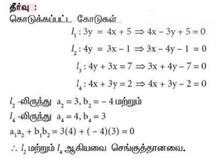 எனக் கொடுக்கப்பட்ட நான்கு நேர்க்கோடுகளுக்குக் கீழ்க்கண்ட கூற்றுகளில் எது உண்மை