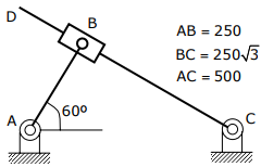 Q7.For the configuration shown, the angular velocity of link AB is 10 rad/s