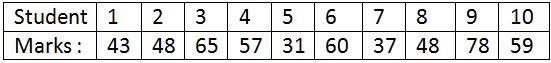 The table below gives the marks obtained by 10 students in statistics. Calculate standard deviation