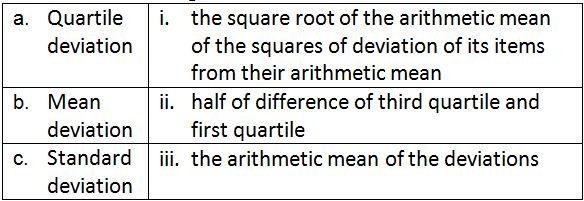 Answer : Option DExplaination / Solution: Quartile Deviation (QD) means the semi variation between the upper quartiles (Q3) and lower quartiles (Q1) in a distribution. The mean deviation (also called the mean absolute deviation) is the mean of the absolute deviations of a set of data about the data's mean. Standard deviation is a measure of the dispersion of a set of data from its mean. It is calculated as the square root of variance by determining the variation between each data point relative to the mean. If the data points are further from the mean, there is higher deviation within the data set.